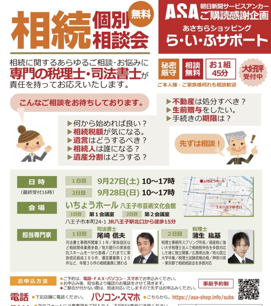 【9月27日28日】相続個別相談会(相談無料)